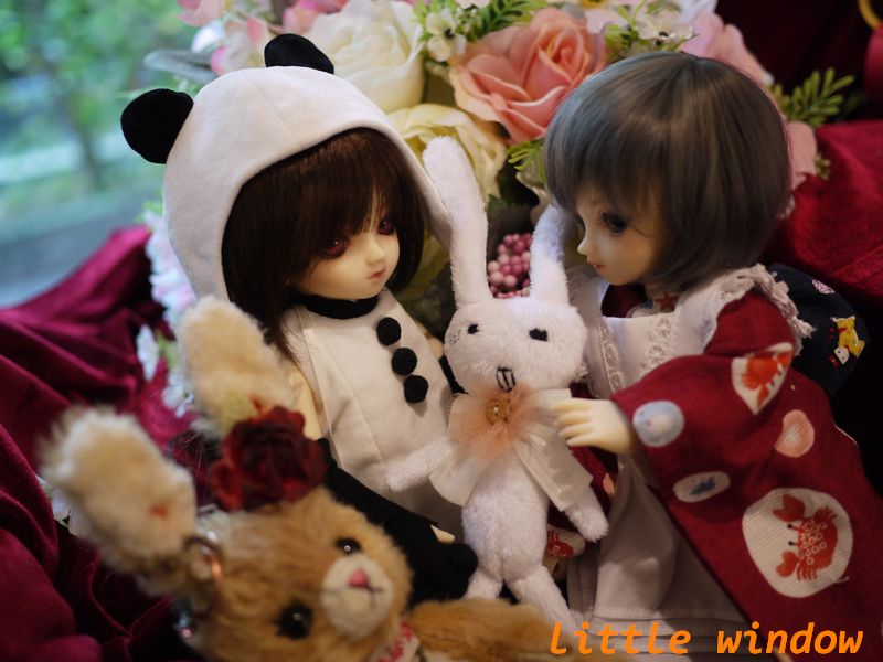 うさぎのぬいぐるみを取り合ってますw